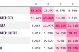 体育资讯02月24日讯 英超第27轮战罢,数据机构Opta的超级计算给出了最新的排名预测。 争冠集团方面,阿森纳赢下北伦敦德比后,夺冠概率回升至83.67%,曼城则是15.62%。维拉有高达50.23%的概率在赛季末排名第三。 …