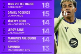 体育资讯11月27日讯 本赛季欧冠5轮战罢,数据网站Squawka盘点了本赛季欧冠成功过人次数榜,具体如下: 1、亚马尔(巴萨)18次 2、海于格(博德闪耀)18次 3、波登斯(奥林匹亚科斯)15次 4、多库(曼城)14次 5、…