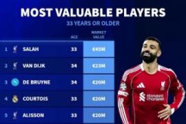 体育资讯12月7日讯 德国转会市场统计了年龄33+球员的身价,并列出榜单,萨拉赫4500万欧居首,梅西1800万欧第七。 年龄33+球员德转身价排名: 萨拉赫(33岁)——4500万欧 范戴克(34岁)——2300万欧 德布劳内(34岁…