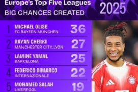体育资讯12月31日讯 2025年即将结束,数据机构squawka也统计了本年度五大联赛创造重大机会情况,奥利塞独自领跑。 2025五大联赛创造重大机会榜: 1. 奥利塞(拜仁慕尼黑),36次 2. 谢尔基(曼城、里昂),27次 3…