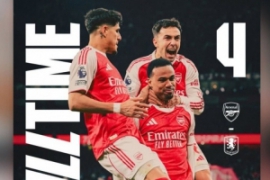【比赛战报】 年度收官!阿森纳4-1终结维拉11连胜 枪手4人破门热苏斯复出首球 阿森纳4-1维拉。积分榜方面,阿森纳45分暂5分领跑,维拉各赛事11连胜终结39分第三。 近4轮仅1胜!曼联1-1送狼队终结12连败 齐尔克泽…