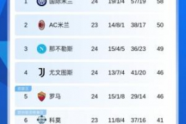 体育资讯02月10日讯 意甲第24轮今日结束两场比赛,罗马2-0轻取卡利亚里,与第4尤文同积46分排第5;亚特兰大2-1克雷莫内塞;米兰少赛1场落后榜首国米8分,下一场将战比萨,最新积分榜如下: