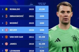 德转史上40岁球员身价榜:C罗1200万欧断层领跑,伊布魔笛400万欧 足球比分直播 2026年3月28日 体育资讯3月28日讯 德国转会市场统计了史上40岁及以上最有价值的球员的榜单,其中C罗以1200万欧元高居榜首。 史上40岁及以上最有价值的球员: 第1名:C罗 —— 2025年,市场价值 1200万欧元 第2名:伊布拉希莫维奇 … 阅读全文