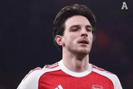 TA:赖斯预计将因膝伤缺席对阵维拉,此前对布莱顿带伤踢完比赛