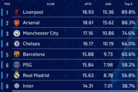 机构预测欧冠联赛阶段排名:军枪城车包揽前四,皇马第七 无拜仁 足球比分直播 2025年9月2日 体育资讯09月03日讯 数据机构Football Rankings预测了本赛季欧冠的联赛阶段前八的球队。利物浦预期积分18.93排名第一,阿森纳18.61次席,曼城、切尔西分列三四,皇马第七,国米第八,德甲班霸拜仁无缘前八。 机构… 阅读全文